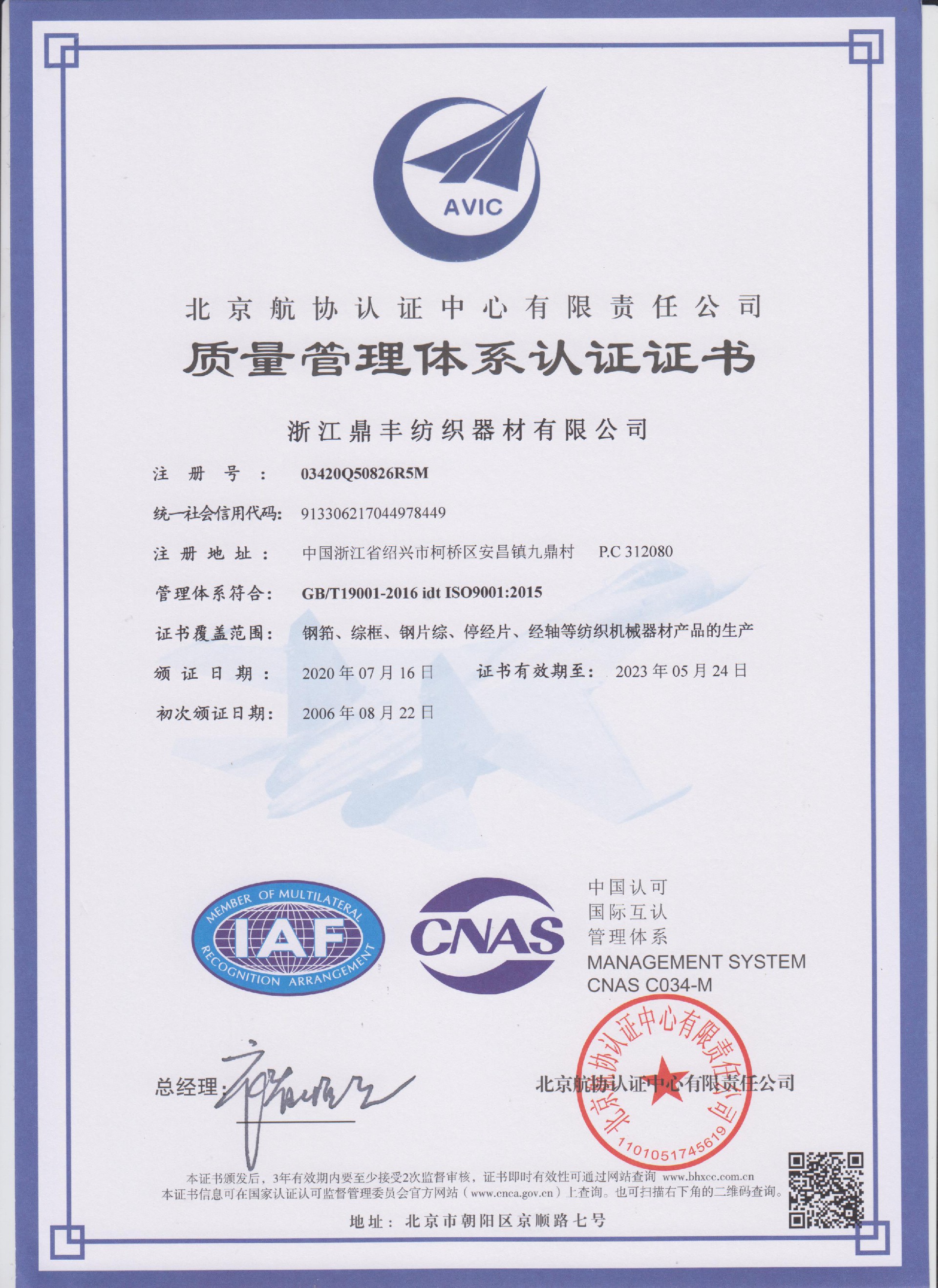 公司現(xiàn)有固定資產(chǎn)6000余萬元,員工300余人,現(xiàn)具有年產(chǎn)噴氣異型筘12萬米,劍桿筘32萬米,噴水筘5萬米,綜框20萬片,鋼片綜2億片,停經(jīng)片1.5億片, 織軸1.2萬套的生產(chǎn)能力。公司“越泉”商標(biāo)被評(píng)為“中國(guó)馳名商標(biāo)”。公司通過ISO9001 :2015國(guó)際質(zhì)量體系認(rèn)證,ISO14001:2015國(guó)際環(huán)境管理體系認(rèn)證,ISO45001:2018國(guó)際職業(yè)健康安全管理體系認(rèn)證,噴氣織機(jī)用鋼筘和織機(jī)用鋁合金綜框獲得“浙江制造”品牌認(rèn)證,公司擁有自營(yíng)進(jìn)出口權(quán),產(chǎn)品暢銷全國(guó)并遠(yuǎn)銷印度、巴基斯坦、土耳其、埃及、哥倫比亞、意大利等國(guó)家和地區(qū)。